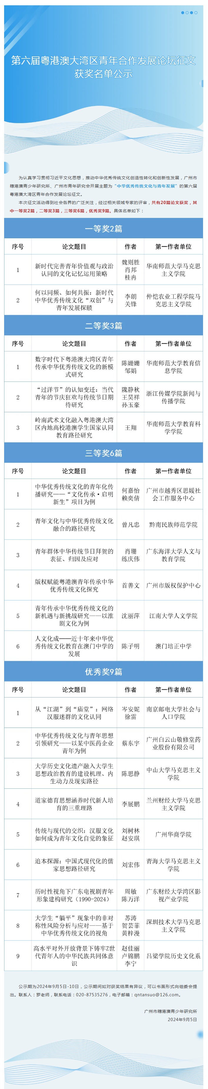 第六届粤港澳大湾区青年合作发展论坛征文获奖名单公示