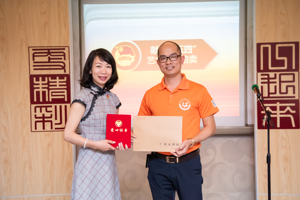 活动当天我们还将所有手工艺品进行了现场拍卖,拍卖所得的1300元善款全部捐给广州开发区善德助学促进会,用以帮助社会上需要帮助的人,为慈善事业略尽绵薄之力,彰显“五四”精神和我校志愿文化。