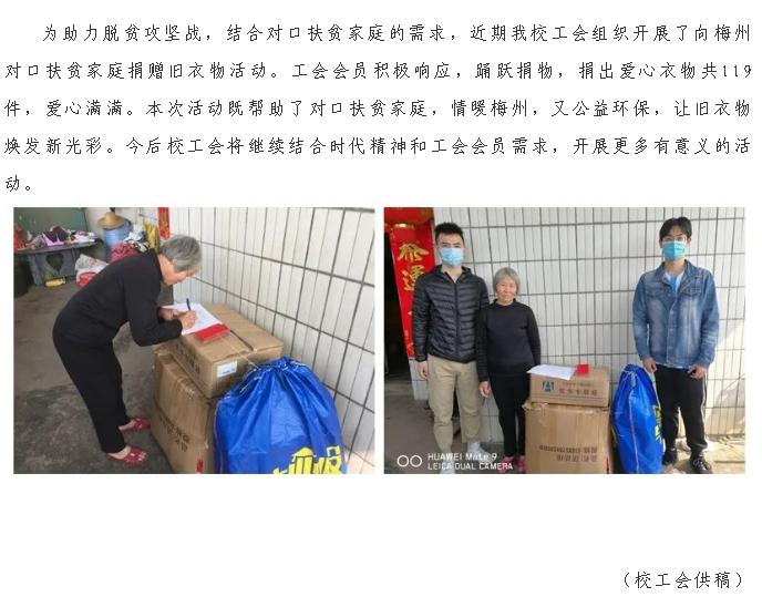 环保公益助力脱贫攻坚战——校工会开展向梅州对口扶贫家庭捐赠旧衣物活动