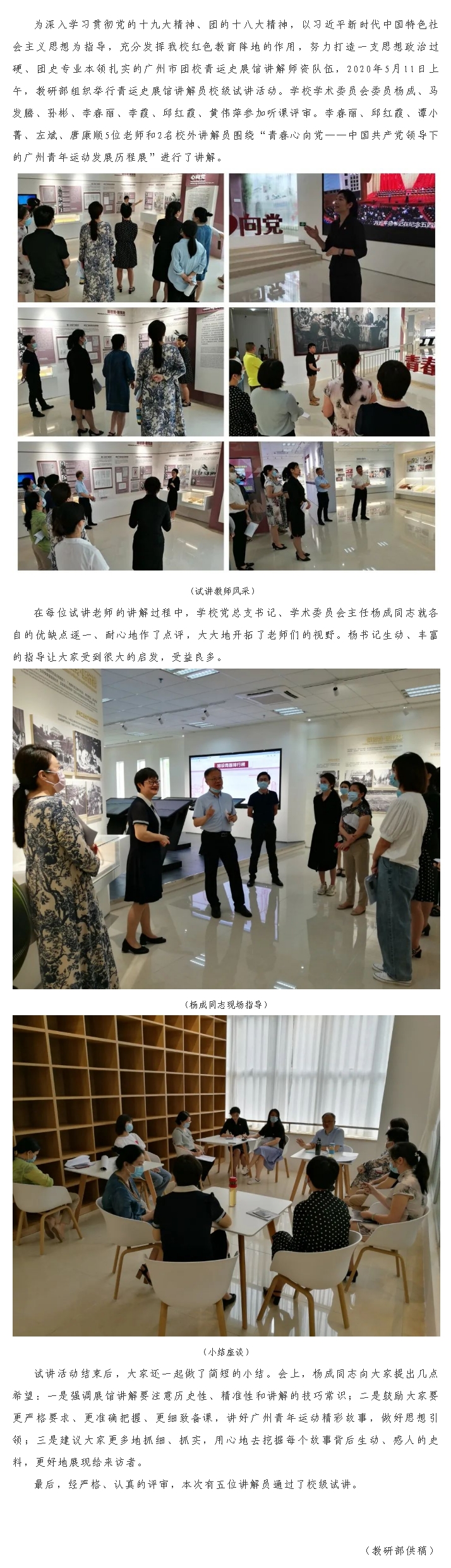 弘扬红色教育文化,发挥青运史展作用 ——教研部组织“青春心向党——中国共产党领导下的广州青年运动发展历程展”讲解员校级试讲评审会