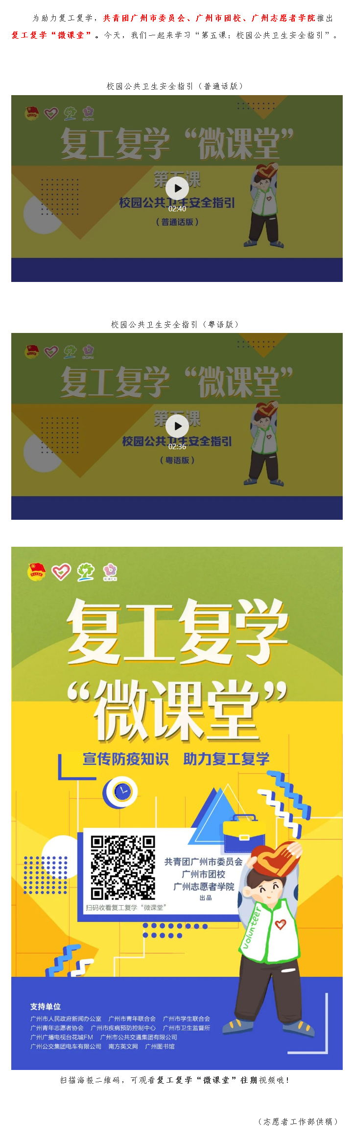 【复工复学“微课堂”】校园公共卫生安全指引