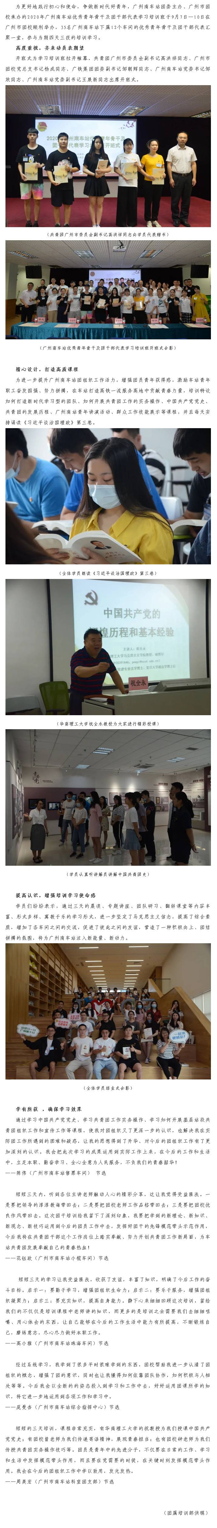 南站青年 争做新时代筑梦人 ——2020年广州南车站优秀青年骨干及团干部代表学习培训班顺利结业