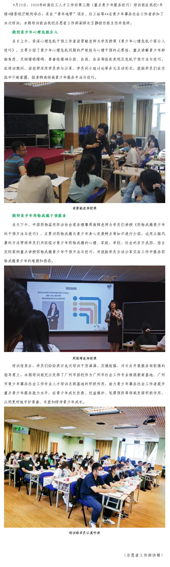 花城有爱 守护青春——我校顺利举办2020年岭南社工人才工作坊第三期 (重点青少年服务技巧主题)培训班