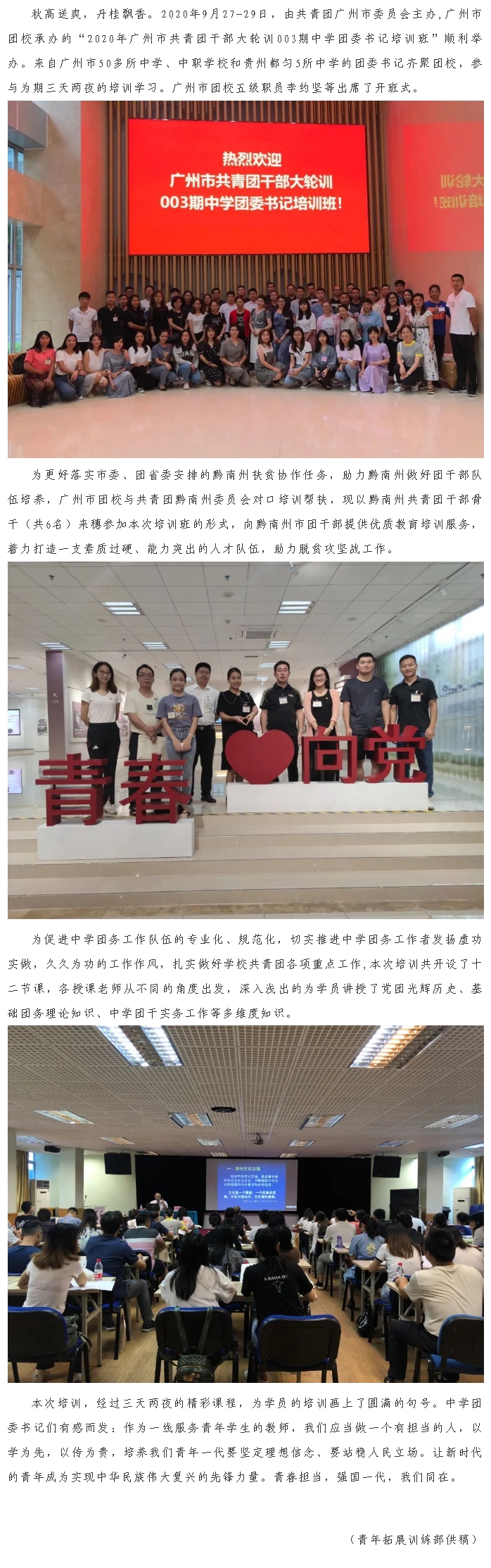 “2020年广州市共青团干部大轮训003期中学团委书记培训班”顺利举办
