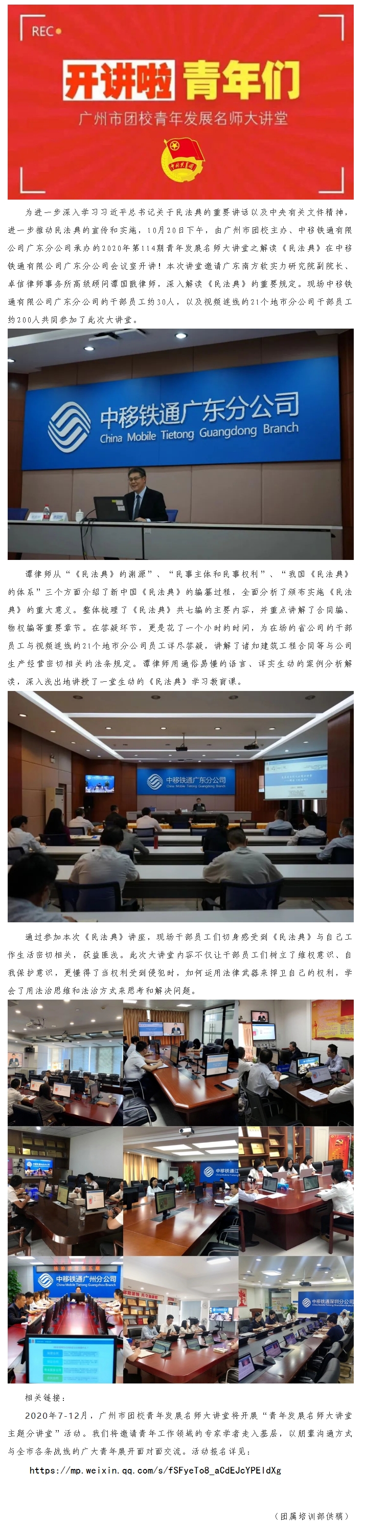 开讲啦|第114期青年发展名师大讲堂走进中移铁通有限公司广东分公司