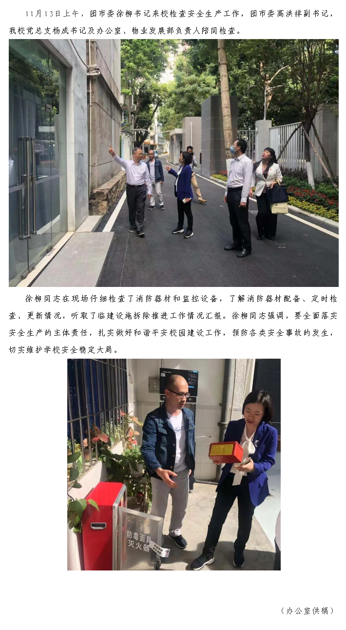 团市委徐柳书记来校检查安全生产工作