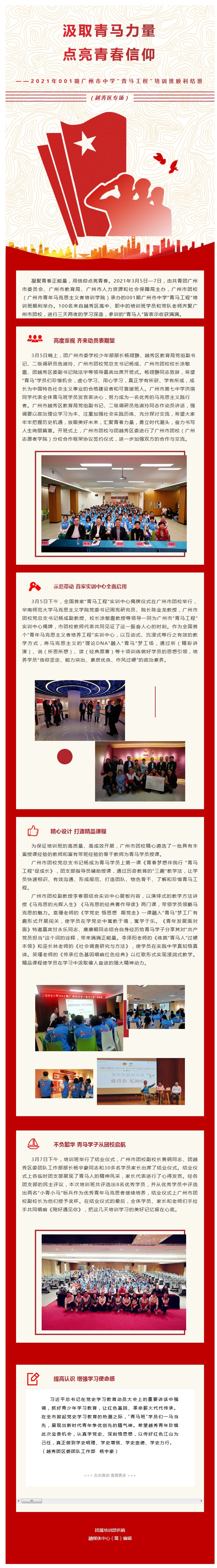汲取青马力量 点亮青春信仰——2021年001期广州市中学“青马工程”培训班顺利结班 (越秀区专?。?