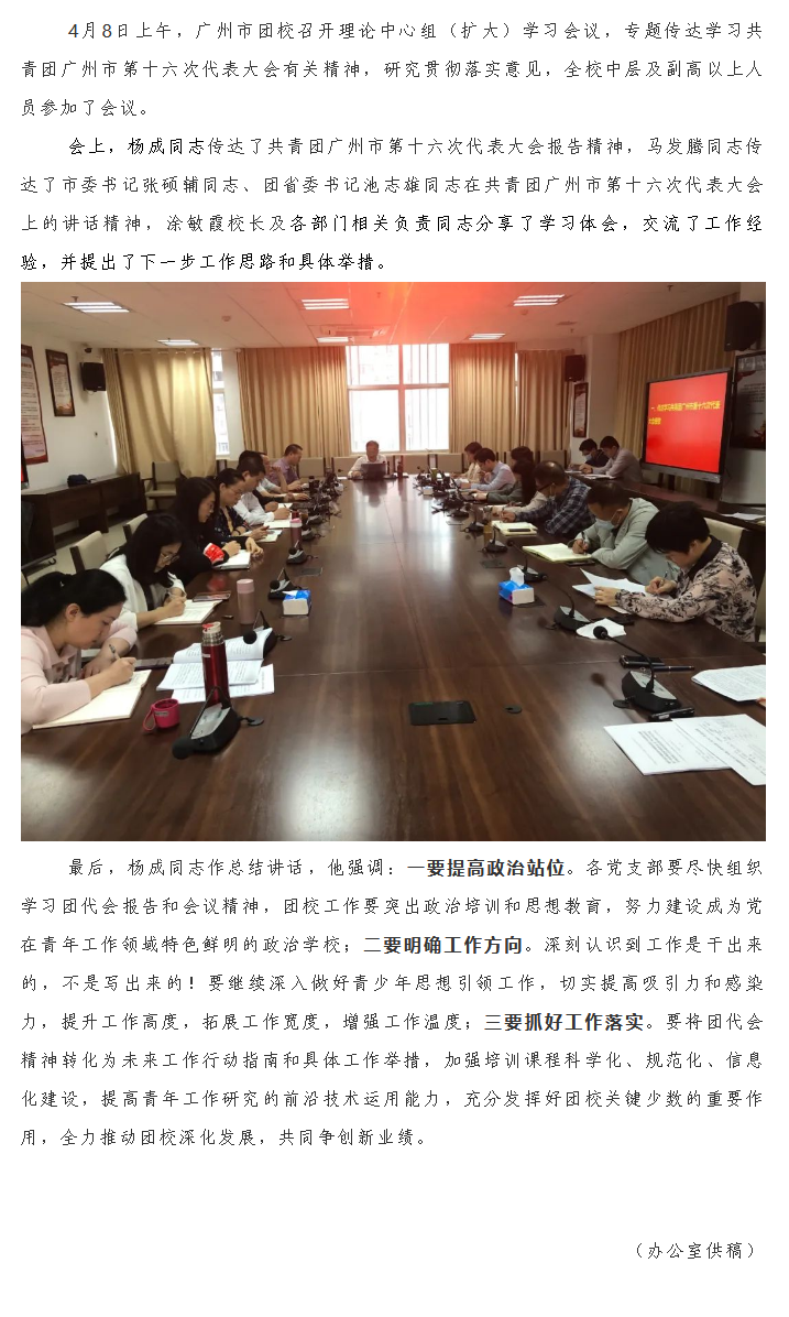 广州市团校召开理论中心组(扩大)学习会传达学习共青团广州市第十六次代表大会精神
