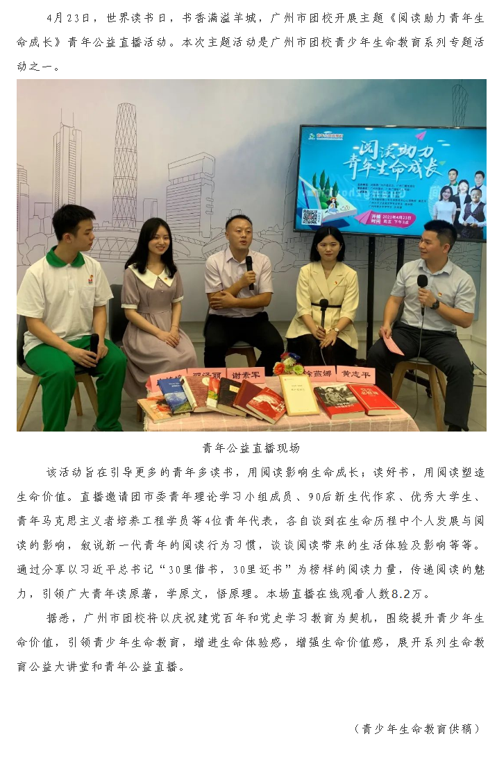 阅读的初心,生命的张力——广州市团校世界读书日开展青年公益直播