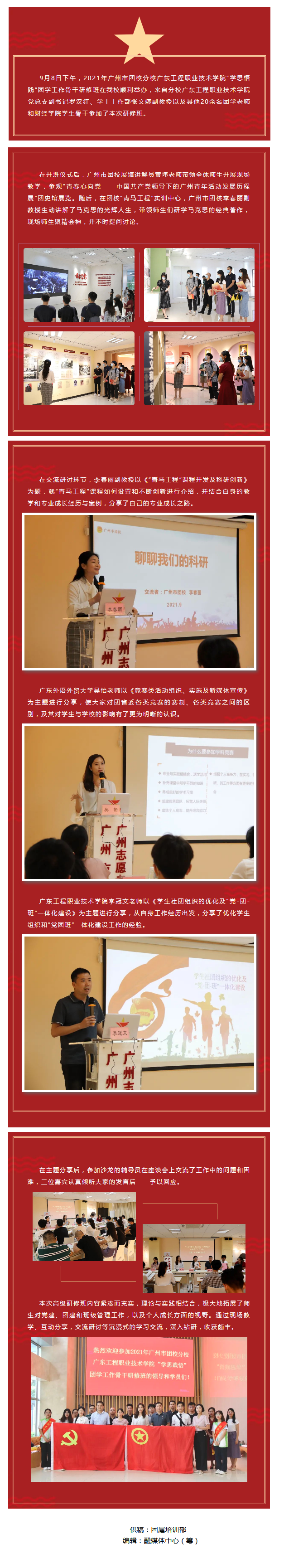 学思践悟守初心 对标笃行担使命——2021年广州市团校分校广东工程职业技术学院“学思悟践”团学工作骨干研修班在我校顺利举办